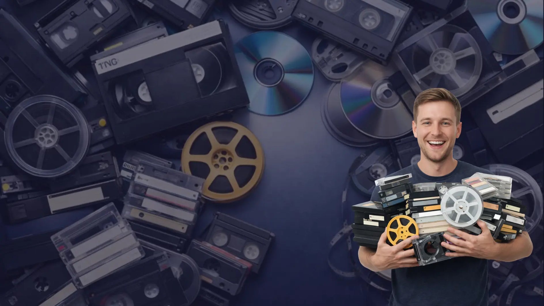 Ik ben Tim en al meer dan 15 jaar breng ik oude herinneringen weer tot leven. Van videobanden, cassettebandjes en lp’s tot cd’s, dvd’s en zelfs oude harde schijven: ik digitaliseer alles met zorg en aandacht. Zo worden jouw dierbare momenten weer eenvoudig terug te kijken, te beluisteren en te delen.